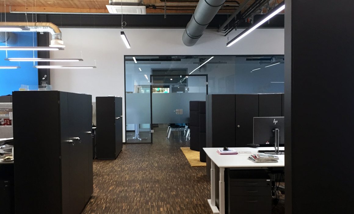 Ausbau des Dachgeschosses am ehemaligen Kunstpark Ost in München zu einem Open Space Büro für die Medientage München GmbH , Bayerische Medientechnik GmbH und Media Lab Bayern
